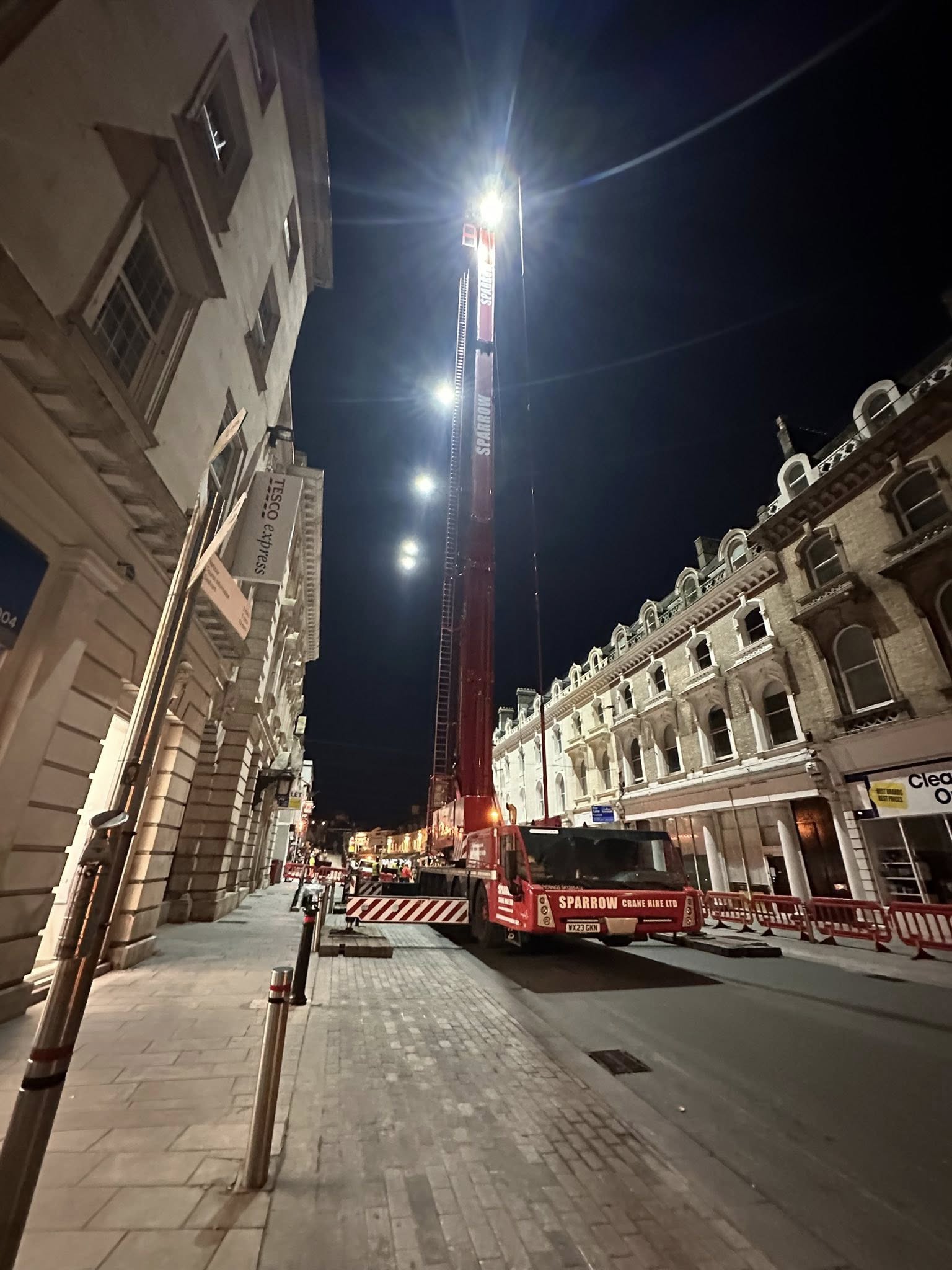 Yesterday marked the second successful lift of new air conditioning equipment onto the roof of a supermarket in central Torquay. The project, carried out using our Spierings SK1265-AT6 mobile tower crane, extended late into the evening to ensure everything was completed safely and efficiently.