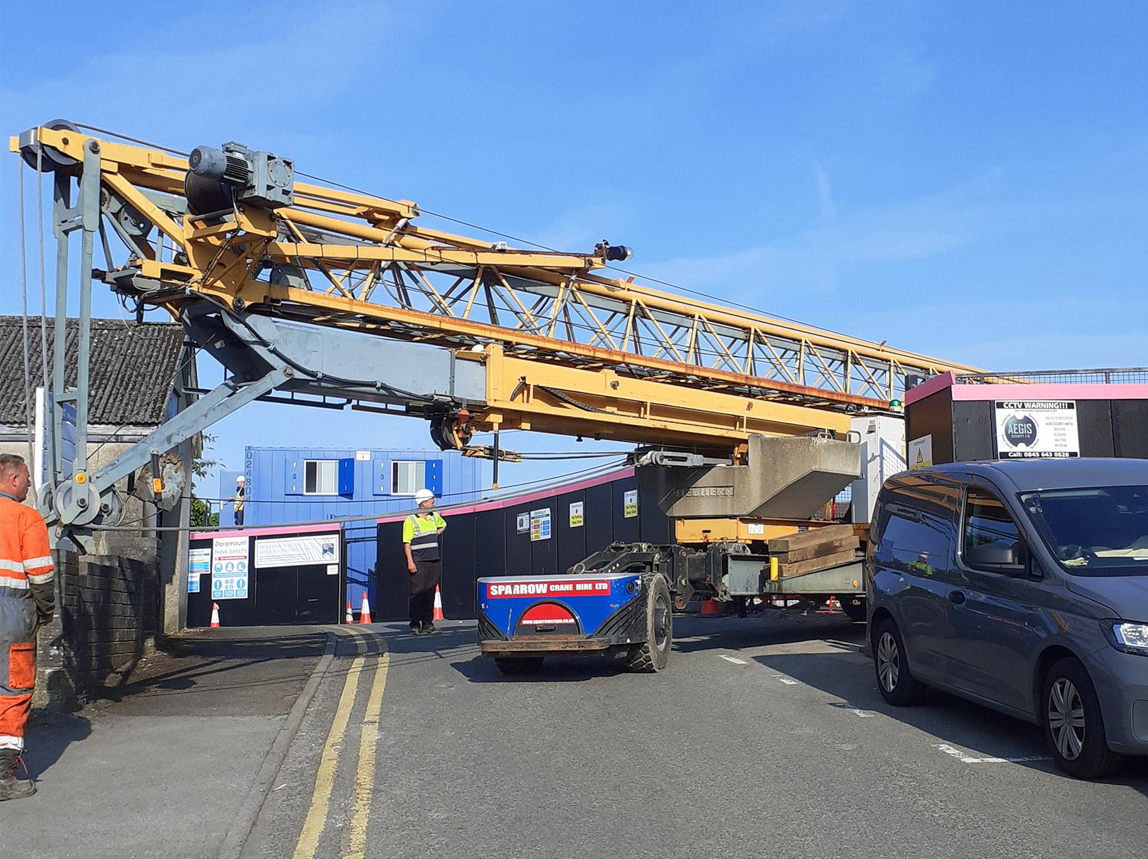 Our trained team lifts out a Self Erecting Tower Crane in the “erected” position